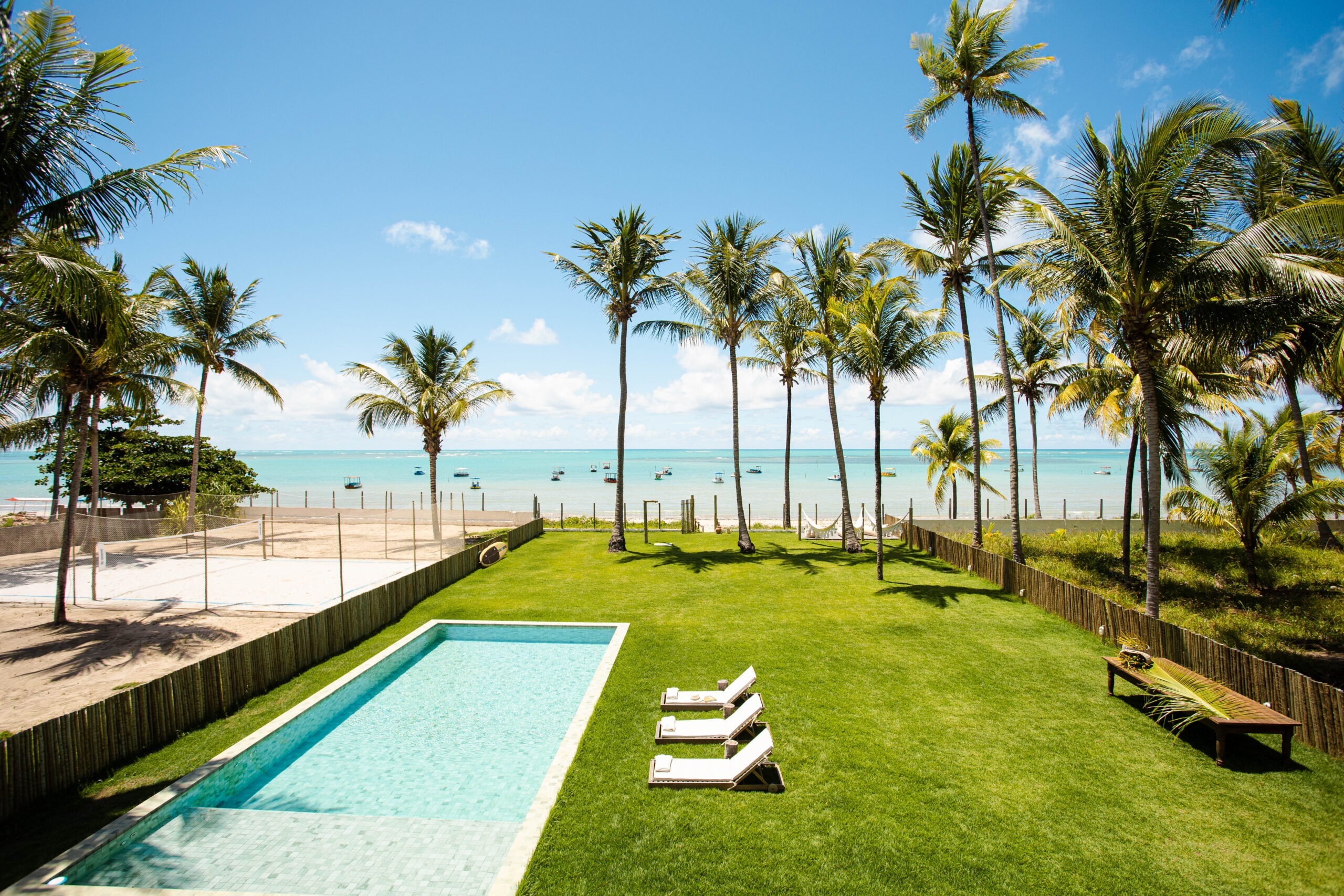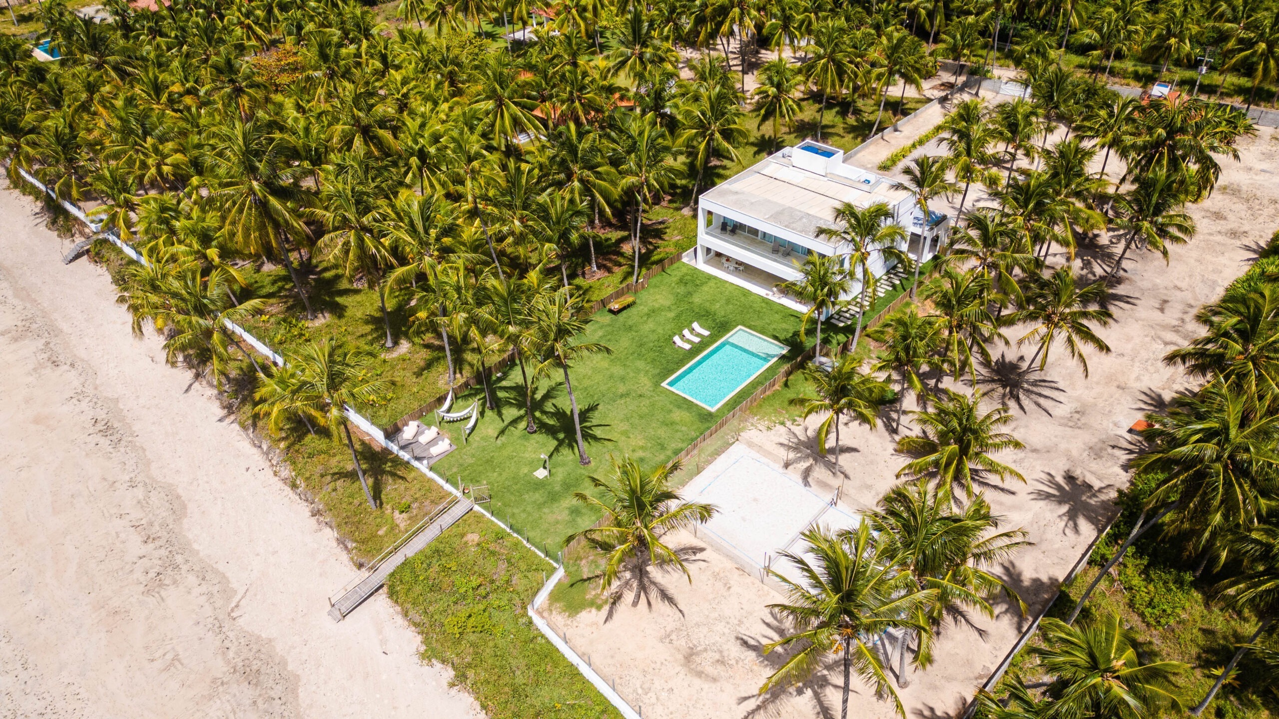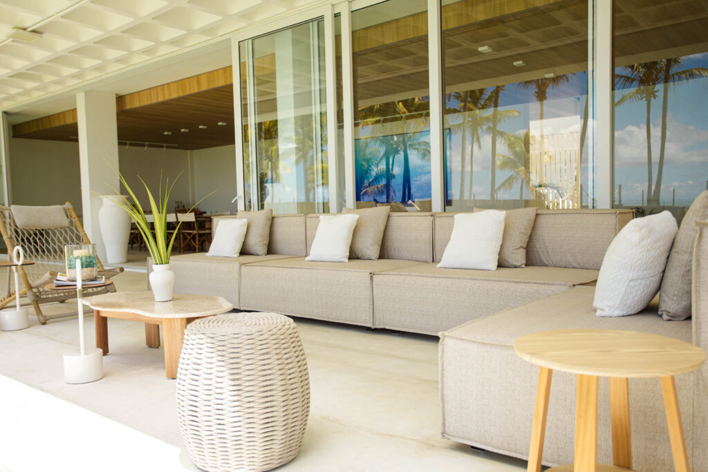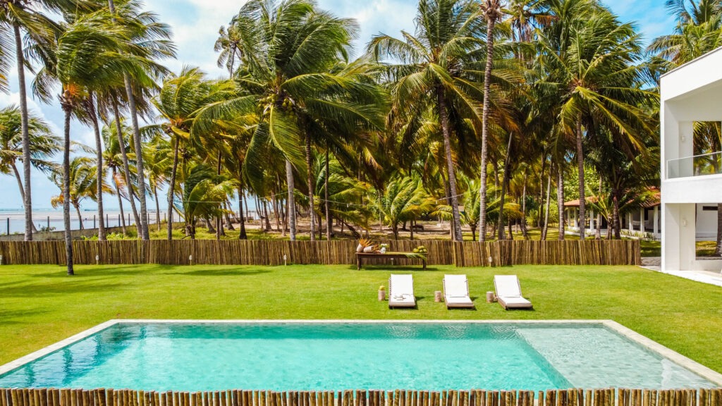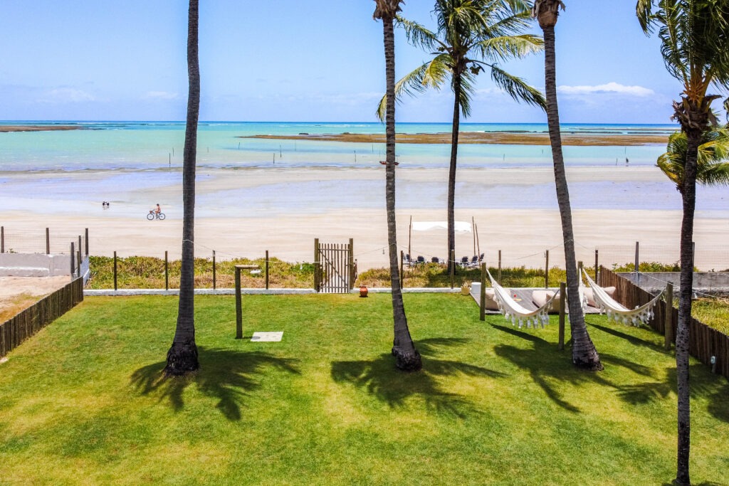 O destino, pé na areia, um refúgio charmoso construído em meio ao coqueiral incorpora a arquitetura moderna com a natureza, oferecendo uma experiência aconchegante de bem-estar físico e emocional através do contato com a natureza.